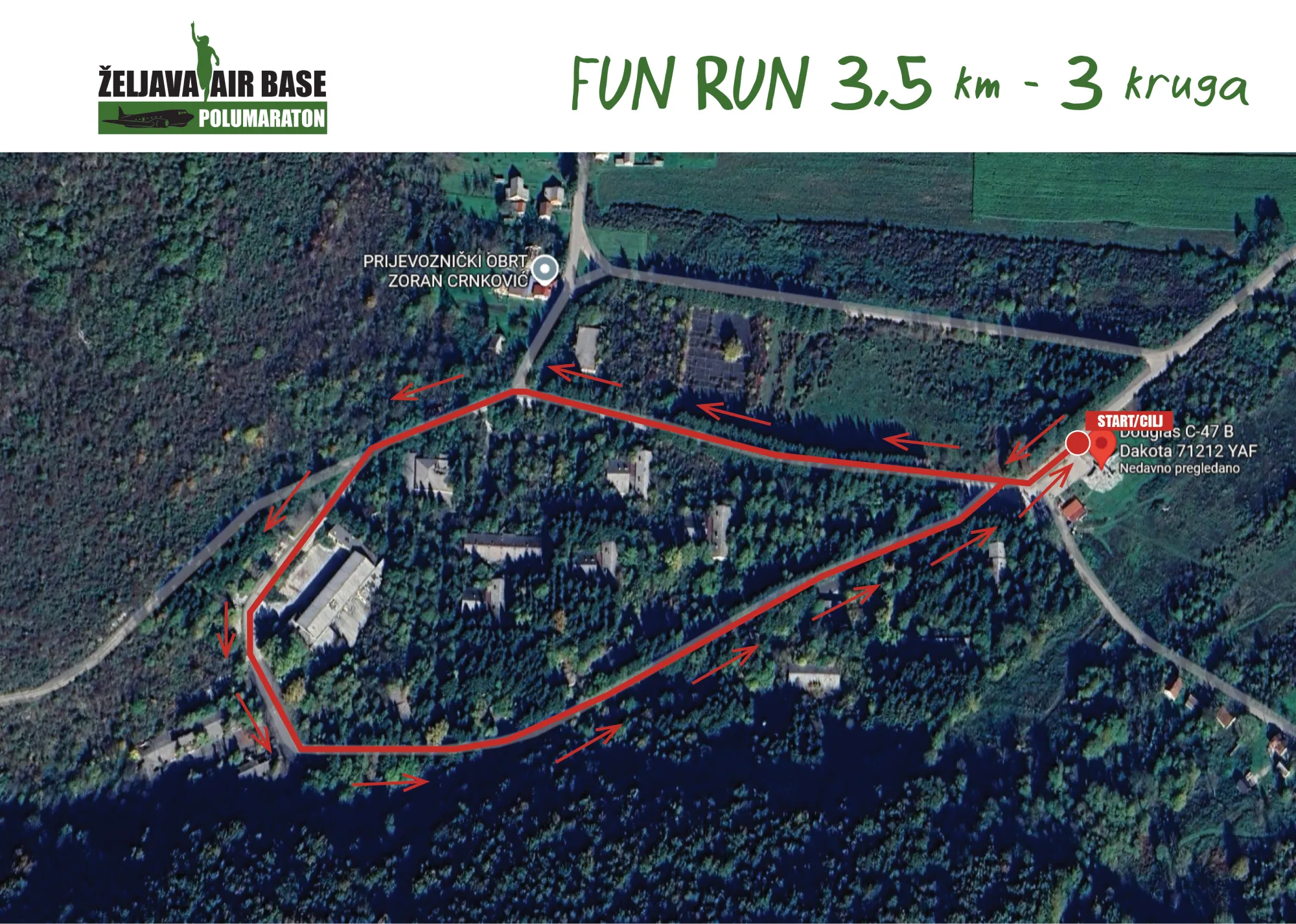 FUN RUN je opuštena utrka na 3,6 km unutar događaja Željava Airbase Polumaraton. Održava se 2. svibnja 2026. s početkom u 9:00 i idealna je za sve rekreativce i trkače početnike koji žele uživati u jedinstvenom iskustvu trčanja na ruti koja vodi po napuštenoj ravnoj pisti bivšeg vojnog aerodroma Željava.